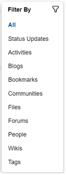 Note: You might see a different list depending on what apps your organization deploys from Connections and other products.