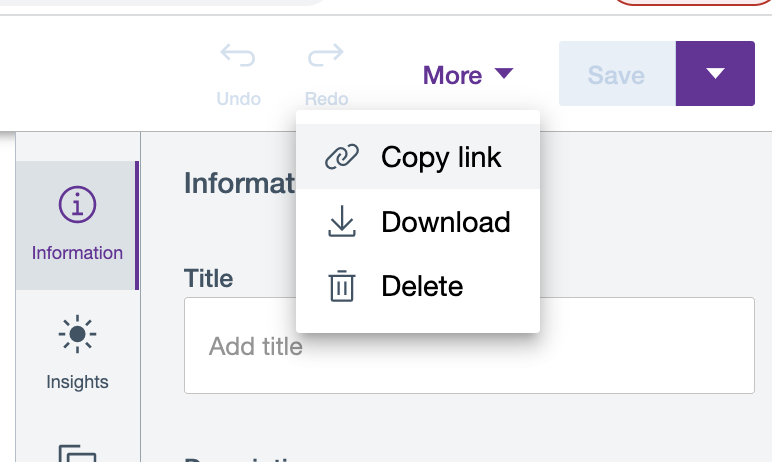 In contrast, a binaryUrl you get from Copy link on the Edit page, consists of a string of characters representing the collection_id, item_id, and rendition_id.