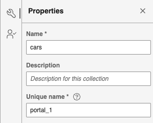 Once the collection unique-name is generated, user can view/edit the collection unique-name in the collection Properties panel.