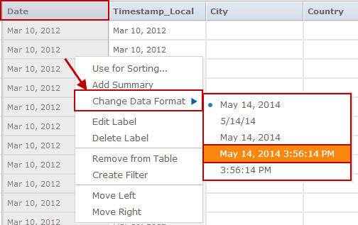 While creating a report, you can modify the data format of fields such as Date and Timestamp.