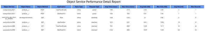 Object Service Performance Detail Report contains the following details: