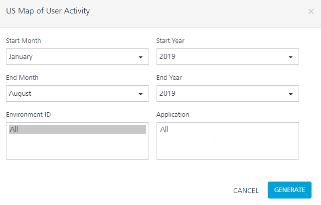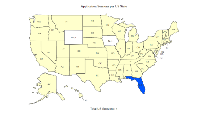 The USÂ Map of User Activity report provides information about user session based on the geolocation of a state.
