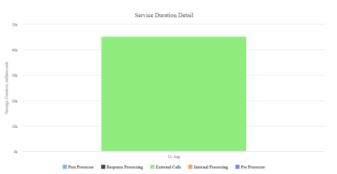 - Postprocessor: Time spent in executing postprocessing logic for the selected service. This is a custom code written by an application developer.